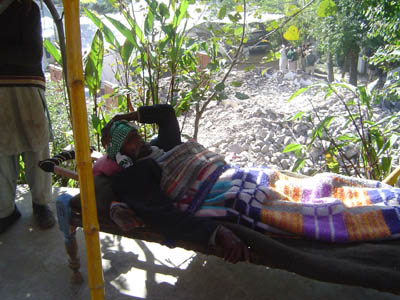 hospital at Bagh with damaged buildings in back
