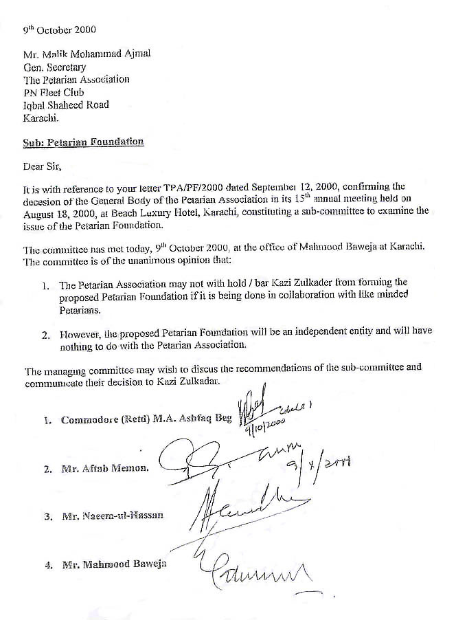TPA letter of no objection on formation of Petarian Foundation